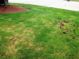 Annual grub preventive is necessary for nearly every lawn in Michigan. Without preventives applied annually, most lawns have close to a 50% chance each year of getting an infestation that causes damage. Lawns with surrounding wood lines, flowering landscapes, and trees (especially birch or any tree that flowers) are even more likely to be damaged. Once infestation has begun, other predators like skunks, moles, and crows also cause massive destruction while digging for them. Our Grub Preventive Program is far less expensive, more effective, is fully guaranteed, and less chemically invasive than indiscriminate contact controls and damage repairs needed after infestation has occurred. This program stops damage before it can start, only has to be applied once per year, is non-carcinogenic, and does not affect any other type of insect. If you already have an existing problem, contact killers are necessary to halt damage until preventives can be applied at the end of spring. If you believe you have grubs, please contact us immediately for a free analysis and estimate.